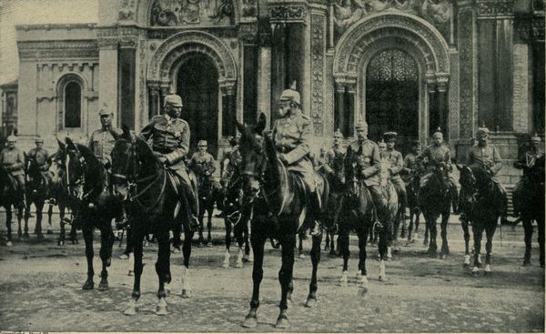 For many months previous to August, 1914, the Indian office in London had been apprehensive of rebellion in India. In Egypt the circumstance that at the beginning of the war the British authorities announced that they would make no use of the native Egyptian army speaks for itself. It was believed in Constantinople and in Berlin that both Egypt and India were ripe for a terrible revolt against the rule of the British Raj: the uprisings of millions of fanatical natives that would forever sweep British control from these two key places to the trade of the world and would institute a Turkish suzerainty, backed and controlled by Berlin. This was thought all the more likely as thousands of the British regular troops had been withdrawn (p. 017) from India and Egypt for service in France, being replaced by raw levies from England and the Colonies.