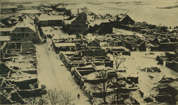 On August 13, 1914, Embourg was stricken into ruin. On the same day the electric lighting apparatus of Fort Boncelles having been destroyed, the few living men of its garrison fought through the following night in darkness, and in momentary danger of suffocation from gases emitted by the exploding German shells.