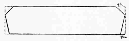 Material and the Process.—For making the pad it will be necessary to secure a piece of binders' board—i. e., heavy pulp or straw board—of the required size. The medium weight is the best, and it may generally be obtained at the bookbinder's. If this cannot be obtained, two sheets of 10-ply card-board may be used instead. The size given in the drawing will carry a half sheet of commercial blotting paper. The edges of the paper board should be bound with passe-partout binding of a colour to harmonize with the leather that is to be used; the strips of binding should[337] be long enough to extend under the leather corners but they need not reach up to the corners of the board. After the binding has been put on, the top of the board should be covered with paper also harmonizing in colour with the leather, and the paper should be cut of such size as to lap over the edge of the binding and yet leave a suitable width of the binding. The so-called "cover papers" will be found satisfactory.