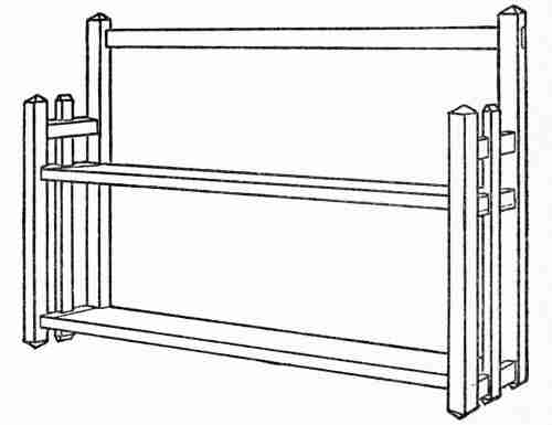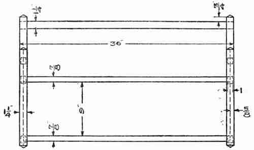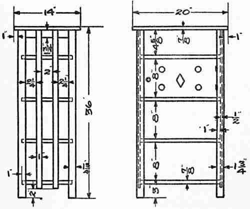 The chief expense would naturally be for the living room, dining-room, and kitchen. The dining-room, however, may well be simply a corner or alcove of a large living room. Such an arrangement greatly increases the value of a single fireplace, which will be required to give the summer home the sense of perfect comfort. This may be of rough field rock and should be large enough to take one-cut fireplace wood. The chamber furnishings may be very simple indeed. Furniture dealers make a point of supplying beds, bureaus, chairs, and cabinets of simple design, unfinished, so that the purchaser may stain them to harmonize with any desired colour scheme. But such furniture, or good substitutes for it, can be made very inexpensively. For example, the stock for a good bed will not cost over seventy-five cents. Cases provided with shelves and curtains in place of drawers, made at a cash outlay possibly of one dollar, will serve for bureaus. The cost of materials for building an eight-room cottage in every way satisfactory need not exceed five hundred dollars; and such a cottage could be beautifully furnished[373] by clever boys and girls at an expense for materials of one hundred and fifty or perhaps two hundred dollars.