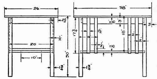 The Working Drawings.—A considerable number of detailed drawings had to be made before the[22] work of construction could be wisely begun. This furnished an interesting set of problems for the mechanical drawing groups of the technical high school. The material for this work consisted of rough sketches in pencil, but with the correct dimensions as determined in the plan accepted as the result of the competition in design. These preliminary sketches required much study on the part of both boys and girls, under proper guidance, in order to find out what the elements of construction should be, what dimensions were required, and how the various parts should be put together. It was an experience of great value to all, but especially to those boys who were looking forward to architectural draughting as a possible vocation. They got an inside view of the importance, on the one hand, of accurate working drawings as a basis for good construction and, on the other hand, a practical illustration of the necessity of a thorough knowledge of constructive principles, in order to make correct working drawings. They saw that the efficient architect must be a builder, acquainted with all the detailed processes employed by the carpenter or mason, informed upon all the conditions to be met, and knowing the best ways of meeting them. They gained impressions which should [23] help them, in studying the work of great architects, to look beyond the exterior, however pleasing it may be, for those elements of strength and beauty that characterize all good workmanship.