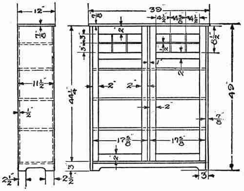 It will be noted as a possible fault in the plan that the range is very near the door into the passageway leading to the bedroom, the living room, and the hall. This point received due consideration; but in view of the compensating advantages the arrangement was thought allowable, inasmuch as the door into the passageway would be used only occasionally. There seemed to be no more convenient location for the passageway, which was designed to give privacy to bedroom and bath room and, in cases of sickness or any emergency requiring it, easy communication between the kitchen and the bedroom.[12] Special Features.—The pantry was located between the kitchen and the dining-room for obvious reasons—to give easy communication in serving and to confine kitchen odours to their proper place. In place of a kitchen closet a cabinet was provided for as being on the whole the more serviceable of the two. It is always desirable to have an entry or lobby, with a convenient part of it reserved for the refrigerator; but the need of providing as much room as possible in the kitchen itself seemed to justify the omission of the lobby. Another unusual feature—this time not an omission—is to be found in the window of the bedroom closet. Such a window, although not common, was thought to be very desirable on sanitary grounds and as a possible protection against moths.