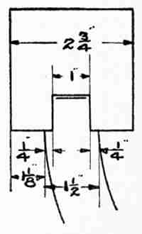 The copper is now ready to be bent to the required shape. To do this prepare a block of hard wood 8 inches long and 2 inches wide, grip it in a bench vise, and clamp the strip of copper squarely across the block in such a position that the sides may be bent over the edges of the block. When this has been done it only remains to clean the outside surface and finish it on the felt buffing wheel. If a fine polish is desired, the buffing should be preceded by careful grinding with a Scotch water stone and water.