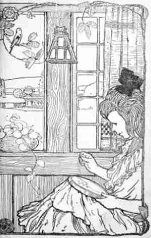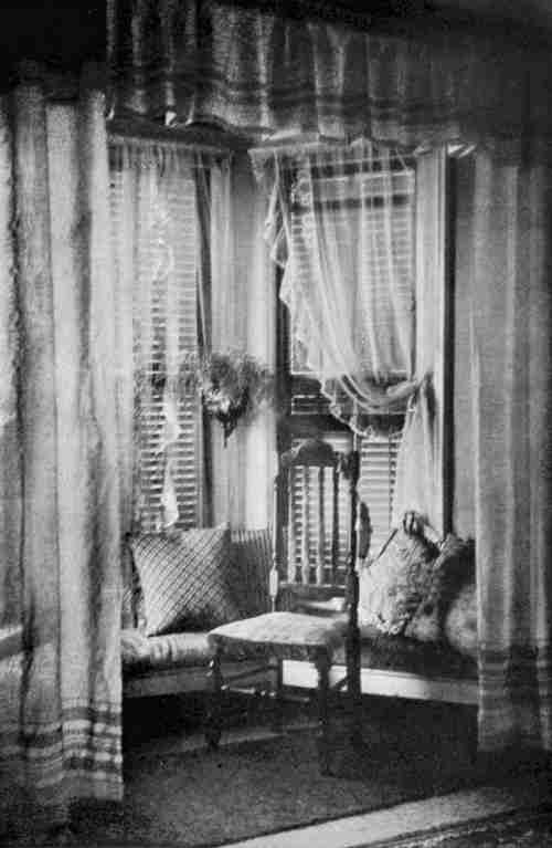 The colouring of the walls of the bedroom, bath room, and kitchen was not so important a question[20] as the decoration of the three front rooms. Utility and sanitary conditions were important things to be considered. Light tints were decided upon, which in the bedroom might be relieved, in the finishing touches, by delicate stenciled figures in some warm tone.