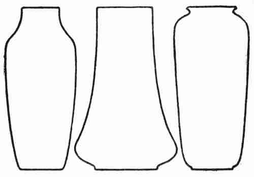 Handles.—If handles or buttresses are desired, care should be taken that they are designed as an integral part of the vase—i. e., that they continue or reinforce its lines. Two suggestions for the treatment of the problem of handles are given in the accompanying drawing. It will be noted how sympathetically these handles conform to the lines[310] of the vases to which they are attached. Handles that give the impression of being made for another vase should be avoided.