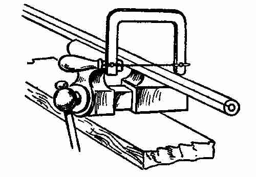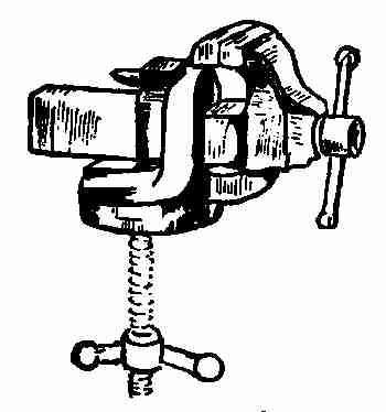 I couldn't get along without my bench vise. Here it is; made of metal. It can be fastened to a table as well as to a bench. It holds any tool used for shaping and also the metal when I wish to file it.[7]