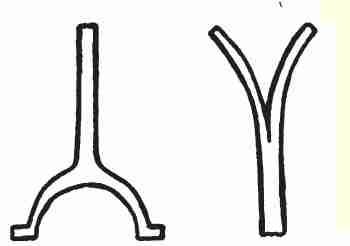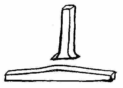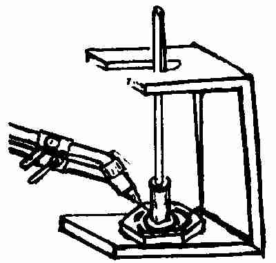 Arms: The two pieces of 1⁄4 × 1 × 15 ins. are bent and scarfed. The two scarfed edges are welded together. Then the end is welded to one end of the upright post.