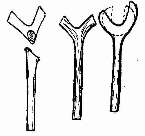 Stock: 7⁄8 × 12 in. round, for handle. Two pieces 1⁄2 × 16 in. round rod.