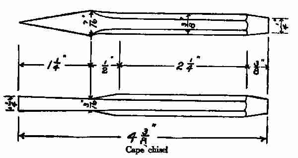 Stock: 5⁄8 in. round, 6 ins. long, of soft steel or wrought iron.