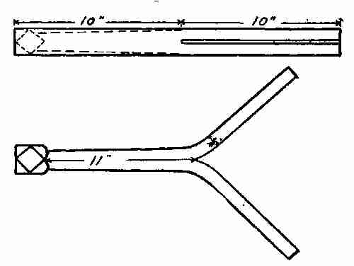 Material: One piece 5⁄16-in. square iron, 20 ins. Two pieces 5⁄16-in. square iron, 9 ins. One piece 5⁄16 in.[407] square iron, 7 ins. One piece 3⁄16-in. round iron, 8 ins. One sheet No. 20 iron, 6 in. in diameter.