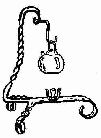 The sketch here shows a simple design of a kettle stand. The parts are (1) upright stand, (2) alcohol lamp holder, (3) hook.