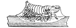 Even when partially buried in these bubbles the tail is oscillated to the right and left, though when completely immersed the tail is only occasionally thrust out for air which is allowed to escape in the mass apparently without the right-and-left movement, though of this I am not sure. It is interesting to observe that in half a minute some thirty or forty bubbles are made in this way—a bulk of air two or three times exceeding the bulk of the body—without the slightest diminution in the size of the body.