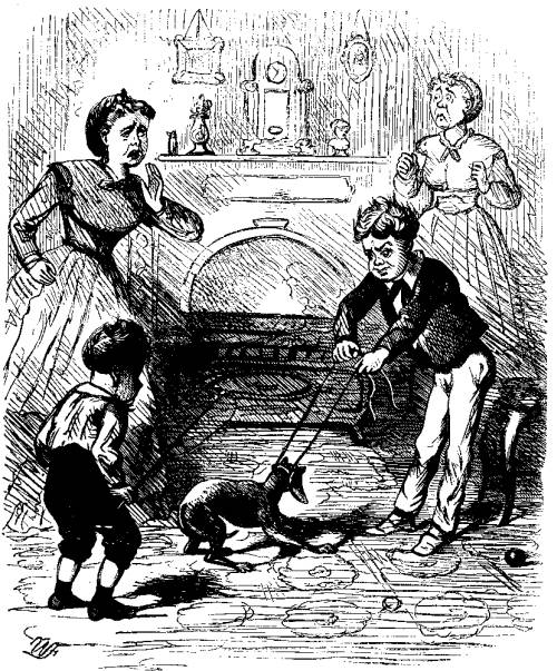 A POWERFUL PROTECTOR. Mother. "WHY, ROSIE, HOW LATE YOU ARE TO-DAY!" Rosie. "YES, MA, BUT I COULDN'T HELP IT. THERE WAS A POOR LITTLE GIRL AT SCHOOL WHO HAD NO ONE TO TAKE CARE OF HER, AND SO I HAD TO SEE HER HOME." COMIC ZOOLOGY. Order-Reptilia. THE VIPER. The supposition that this snake prefers a file to any other species of nourishment is a vulgar error, and belongs to the same mendacious category as the stories that ostriches are fond of ten-penny nails and soldiers of hard tack. It is true that old files are sometimes bitten by vipers in localities where these serpents abound, but in the lizard and hop-toad they usually find metal more attractive. The viper, when in a state of repose, is of an olive-brown color; but, if trodden upon, turns rusty. He is about twenty-four inches in length, as you may see by applying a two-foot rule to him, but it is a good rule to keep two feet away from him. As a bosom friend he is not to be trusted—a fact in natural history that was discovered many years ago by a green countryman, who got into a bad box by placing a viper on his chest. It is a peculiarity of this serpent, that when held suspended by his posterior extremity he can not raise his head to a level with his tail. In consequence of this provision in the economy of nature, he finds it as impossible to make both ends meet as if he were a human prodigal. In this respect he presents a marked contrast to the hoop-snake, which has no more back-bone than a timid politician, and can put its tail in its mouth, and roll in any direction with the utmost facility. The viper was at one time supposed to have an envenomed tongue, and although this error has been exploded, it is as well to avoid his jaw if possible, as, when irritated, he is very snappish. This snake, according to some naturalists, is oviparous, and according to others viviparous; but all authorities agree that it is viperous in the extreme. Serpents are generated in various ways; the horse-runner, for instance, being derived from the fibres of horses' manes and tails, which probably receive the breath of life in a mare's nest. That such is the origin of the horse-runner the reader can verify for himself, by putting a few horse hairs in a basin of water and watching them till they begin to squirm. Possibly the shorter fibres from the caput of an African might in like manner produce vipers. The experiment is worth trying. There are several varieties of the species in this country; the most malignant and treacherous being the Political Vipers—snakes in the grass—bred from the spawn of the Original Cockatrices, and a curse to the land we live in. WOMAN IN THE CENSUS. A fresh blow has been struck at Woman's Rights! Gallant ladies, eager to cope with figures, have been compelled to yield to numbers—inferior numbers at that! Man, the minority, remains the popular tyrant of population. Women, the majority, don't count, can't count for any thing—even for women—at least in the sense of being Census-takers; for General WALKER has decided that Assistant Marshals LAVINIA PURLEAR and SARAH BURGOYNE (hear it, shades of NEY and BLUCHER!) are ineligible to such a warlike title. General WALKER is not firm in his mind that Marshals PURLEAR and BURGOYNE [would it be as well to say Marshal WALKER and Generals PURLEAR and BURGOYNE?] are feminine. "These appear to be the names of women," he says. Why might they not be the names of men? Is there no right or reason in these days of domestic revolution for men to name themselves LAVINIA and SARAH if they like it, and their wives like it? And suppose LAVINIA and SARAH that ought to be, or might have been, choose to call themselves MAHALALEEL and METHUSALEM—who's to prevent? Why should not the Rev. Mr.---- style himself Miss NANCY if he pleases? Why should not the Hon. Mr.---- rechristen himself BETTY if he has a mind to? H'm! A pretty pass we are coming to if these women folks who ask men's rights and take men's names won't lend us theirs! And alas, alas, ye lasses! What if some-day ye do indeed abstract our census, and marshal us into helpless minority. What if we have to disguise ourselves, and shave our beards, and change our names even to get on the police! Or will ye—ye bullying Syrens!—grow whiskers and wear pantaloons, and put us in station-houses, and clear us out of the Census altogether? A LETTER FROM A FRIEND. Friend PUNCHINELLO: Thee has doubtless sorrowed, in spite of thy motley, with those bereft at Richmond. Circumstances made that disaster a calamity which we have all felt in common. But thee knows that "Blessings come often in disguise." Let us find what small comfort we can in this thought. Circumstances, however, alter cases. How different the feeling—how thin the disguise would have been—had our Capitol fallen, at Harrisburg! Before another Session we trust the proper spirit will move some underpinning there, for the greater good of the Commonwealth. It was formerly said that "Law is law;" but not even a Philadelphia lawyer now knows what law is or what law is not—for "any thing" is law here abouts. Of one result we may boast, if that be not sinful, we are ahead of thy wicked city.. Thee had thy delinquent Tax Collector, but thee has him not. We sorrowed, for we had him not, but now we rejoice in one whose name is—not BAILEY—but HILL. We did not want him, but got him involuntarily, as thee might get the small-pox. Doubtless he will make it more up-Hill work than ever with our taxes, but, if he would only shoulder them and be off, what a blessing? For, verily, it cannot be said, as of old, that a man "heapeth up riches, and knoweth not who shall gather them." But, perhaps, thee pays taxes also? If so, thee can affirm to the gatherer, as well as thy friend, PHINEAS BRODBRIMME. Philadelphia, 5th month, 9th day, 1870. OLD IRON. Somebody talks of the Iron Men of Congress. Does he mean the Cast-iron members or the Pig-iron members? For instance there are the rusty Heavy-we