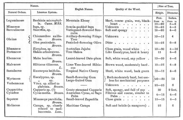 The following is a list of some of the trees indigenous to the shores and neighbourhood of Careening Bay, for which I am indebted to Mr. Cunningham:--