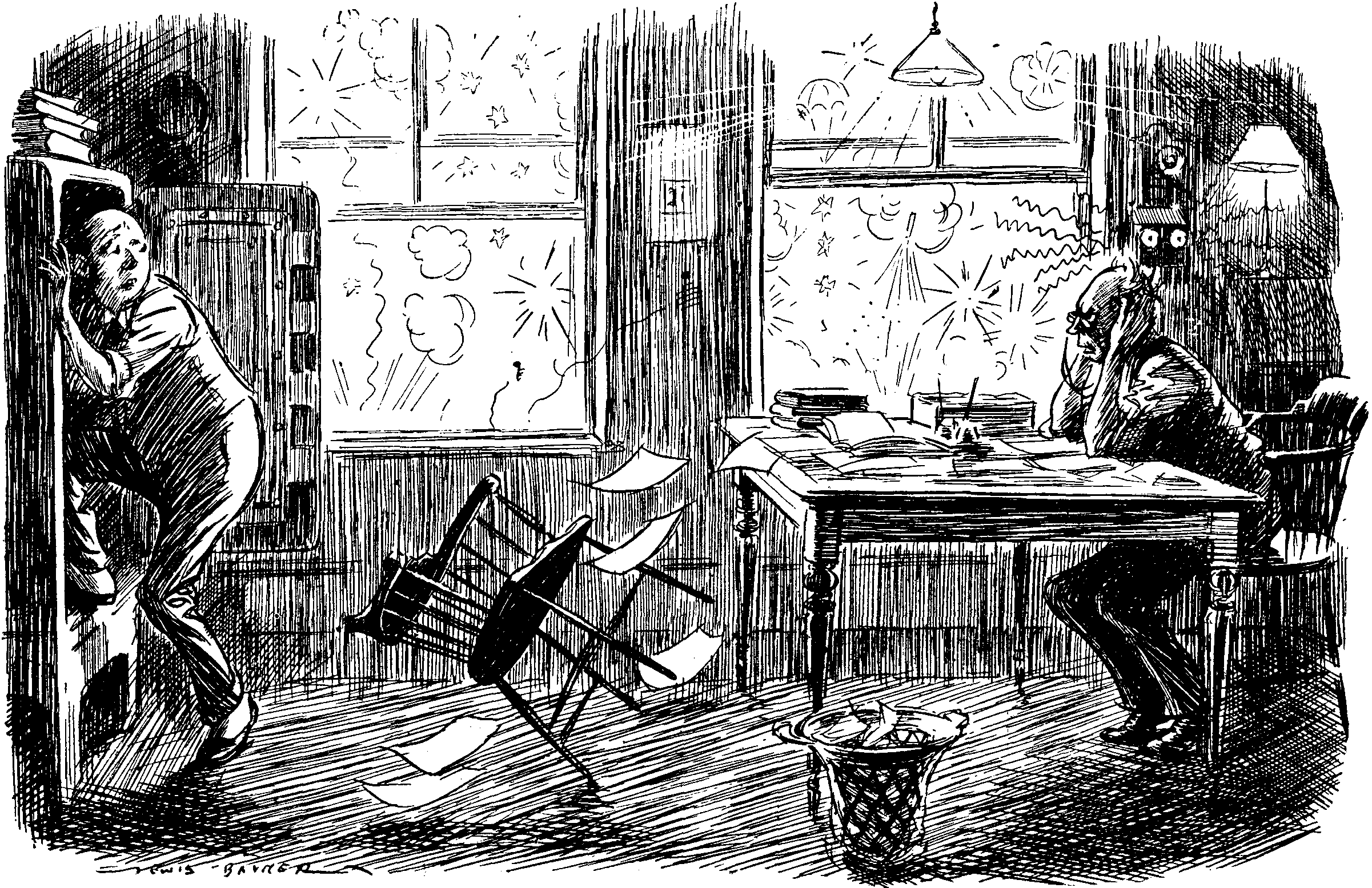 I shake the microphone. It sounds as though sand had got into it, and still there is silence. The minutes creep on and my voice begins to fail. Outside in the quiet night a solitary gas-alarm chirps a few quiet notes to the stars and is still. I continue to say "Hullo!"
