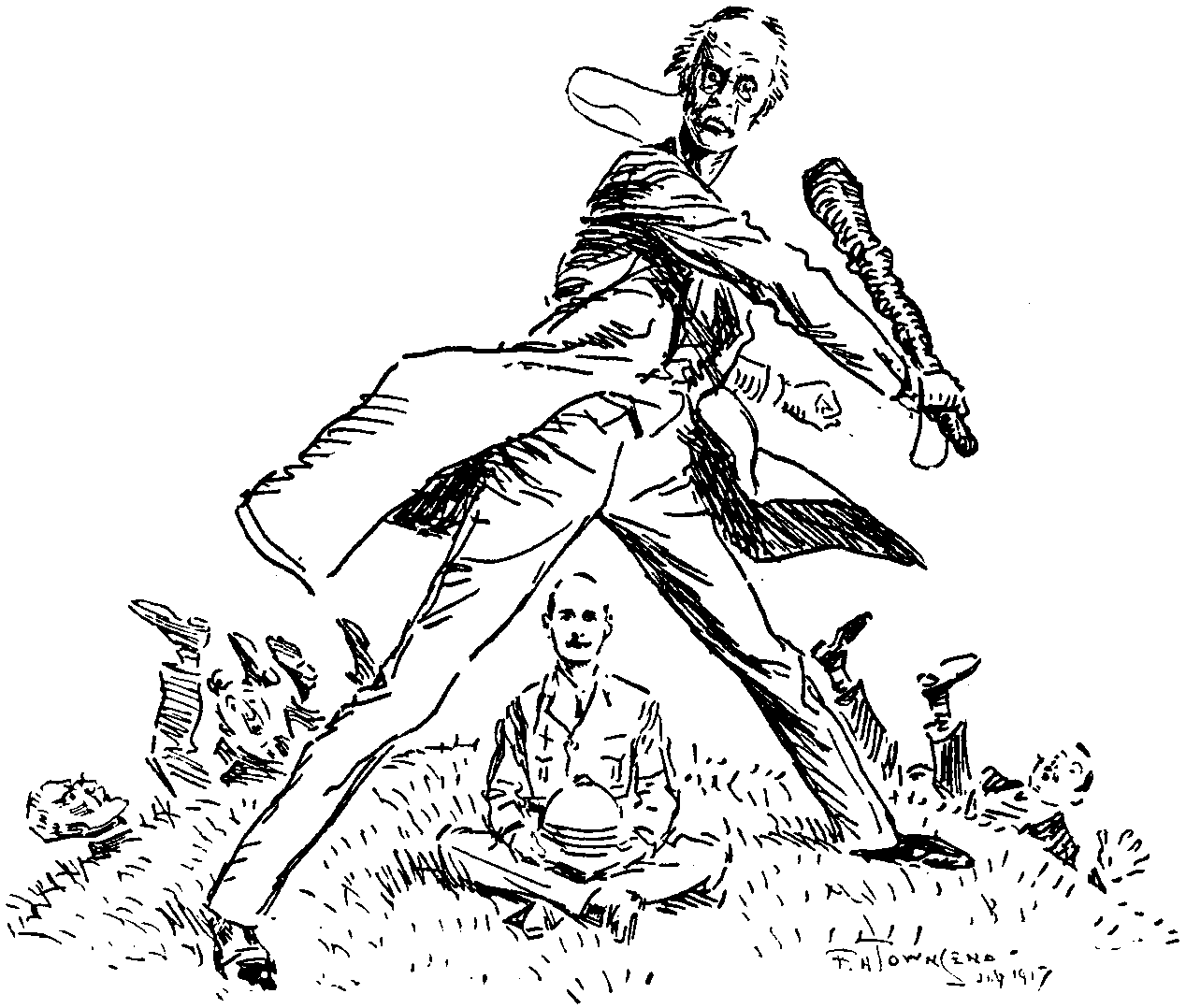 "Some o' these Peace blighters seem to think he's a little angel, basin' their opinion, I suppose, on something I must 'a' missed during my time out. On the other hand there's a tidy few thinks that one German left will spoil the earth. Now me, I holds they're both wrong. The second's nearer than what the first is, I don't deny. But a incident what occurred in that Prisoners' Camp set me thinking that you might make something o' Fritz yet, if you only had the time and the patience.