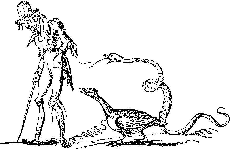 I awoke very hungry, and consequently disposed to be very talkative, but was silenced by finding myself surrounded by a crowd of persons of both sexes, who were eagerly gazing on me. A certain prostrate look of sly, shy humility, lengthened their pale faces, to the exclusion of all intellectual expression. They formed a sort of religious meeting, called a tea-and-tract party; but the open door discovered preparations for a more substantial conclusion to the obbligato prayers and lectures of the evening. My new mistress was evidently descanting on my merits, and read that paragraph from the chaplain's letter which described my early associations, my knowledge of the Creed, and announced me as a source of edification to her servants. Two or three words of this harangue operating on my memory, I put forth my profession of faith with a clearness of articulation and fidelity really wonderful for a bird. What exclamations! what turning-up of eyes! I was stifled with caresses, intoxicated with praises, and crammed with sweetmeats. The moral agent grew pale with jealousy, when Doctor Direful was announced. He rushed into the room like a whirlwind, but stood aghast at beholding the devout crowd that encircled me. Instead of the usual apophthegms, and serious discourse, he heard nothing but "Pretty Poll," "Scratch a poll," "What a dear bird," &c. The malicious moral agent chuckled, and explained that the bird had, for the moment, usurped the attention which should exclusively belong to his reverence, who had taken the pains to come so far to enlighten the dark inmates of Sourcraut Hall. Dr. Direful stood rolling his fierce eye (he had but one) on the abashed assembly; and, pushing me off my perch, drove me with his handkerchief into the dense crowd which filled the bottom of the room, and consisted of all the servants of the house, with some recently converted Papists from among the Sourcraut tenantry. All drew back in horror, to let one so anathematised pass without contact. I coiled myself up near a droll-looking little postilion, who, while turning up the whites of his eyes, was coaxing me to him with a fragment of plumb-cake, which he had stolen from the banquet-table. Dr. Direful returned to the centre of the room, and mounted a desk to commence his lecture. The auditory crowded and cowered timidly round him, while he, looking down on them with a wrathful and contemptuous glance, was about to pour forth the pious venom which hung upon his lips, when a sharp cry of "Get along out of that" struck him dumb. Inquiry was useless, for all were ready to swear that they had not uttered a word. Dr. Direful called them "blasphemous liars," and proceeded one and all to empty the vials of his wrath through the words of a text of awful denunciation, which I dare not here repeat; but his words were again arrested by the exclamation of, "Aisy now, aisy—what a devil of a hurry you are in!" uttered in quick succession.—He jumped down from his altitude; and, in reply to his renewed inquiries, a serious coachman offered up to the vengeance of this Moloch of methodism the mischievous postilion, who had that morning detected the not always sober son of the whip in other devotions than those to which he professed exclusive addiction. When I saw the rage of all parties, I thought of the roasted Indians of the Brazils, and shuddered for the poor lad. After a short, but inquisitorial examination, in which he in vain endeavoured to throw the blame on me, he was stripped of his gaudy dress, and in spite of his well-founded protestations of innocence, turned almost naked from the house. When peace was restored, a hymn was sung as an exorcism of the evil spirit that had gotten among the assembly; when, being determined to exculpate the poor postilion, I joined with all my force in the chorus, with my Catholic "Gloria in excelsis," which I abruptly changed into "Polly put the kettle on." Thus taken in the fact, I was, without ceremony, denounced as an emissary from Clongowes, brought to Sourcraut Hall by the Papist O'Gallagher, with a forged letter, to disturb the community. I was immediately cross-examined by a religious attorney, as if I had been a white-boy or a ribbon-man. "Come forward," he said, "you bird of satan!—speak out, and answer for yourself, for its yourself can do it, you egg of the devil! What brought you here?" I answered, "It was all for my sweet sowl's sake, jewel!"—and the answer decided my fate, without more to do. And now loaded with all the reproaches that the odium theologicum could suggest, I was cuffed, hunted, and finally driven out of the gates by [pg 335] the serious coachman, to perish on the highway. On recovering from my fright, I found myself at the edge of a dry ditch, where the poor shivering postilion sat lamenting his martyrdom. I went up to him, cowering and chattering; and at the sight of me the tears dried on his dirty cheeks—his sobs changed to a laugh of delight; and when I hopped on his wrist, and cried "Poor Pat," all his sufferings were forgotten. While thus occupied, a little carriage, drawn by a superb horse, with the reins thrown loose on his beautiful neck, ascended the hill. At the sight I screamed out "Get along out of that!" which so frightened the high-blooded creature that he started, and flung the two persons in the carriage fairly into the middle of the road. One of them, in a military dress, sprung at once on his feet, and laying the whip across the naked shoulders of the postilion, exclaimed, "I'll teach you, you little villain, to break people's necks." "Oh! murther! murther!" cried the poor boy, "shure, it was not me, plase your honour, only the parrot, Captain." "What parrot, you lying rascal?" "There, Captain, Sir, look forenenst you." The captain did look up, and saw me perched on the branch of a scrubby hawthorn-tree. Surprised and amused, he exclaimed, "By Jove! how odd! What a magnificent bird! Why Poll, what the deuce brought you here?" "Eh, sir
