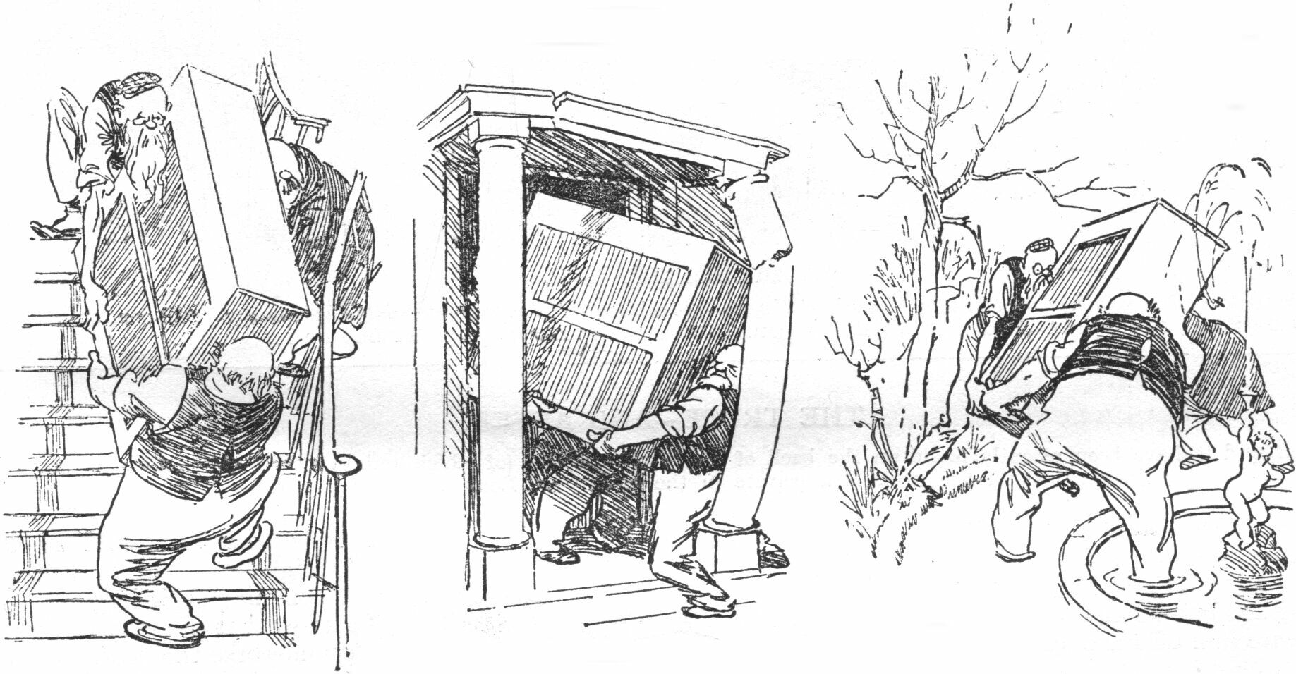 "You are seen falling, falling, falling, [pg 11] still in your car, with the descending cataract. Over and over you are turned in the seething waters, dashed against rocks, hurled through ravines, and finally you are given a sheer drop down a perpendicular waterfall of three hundred feet. Out of the white foam formed in the bed of the waters you emerge swimming strongly hand over hand, until at last you reach the broad waters of the placid river, and finally the shore. Here you notice a train passing some little distance away, and in it, gazing out of one of the windows, you observe—Bill, the murderer! You at once start in pursuit; by a superb effort you catch up the train, and just succeed in swinging yourself safely on board. You can do a little sprinting, I suppose?"