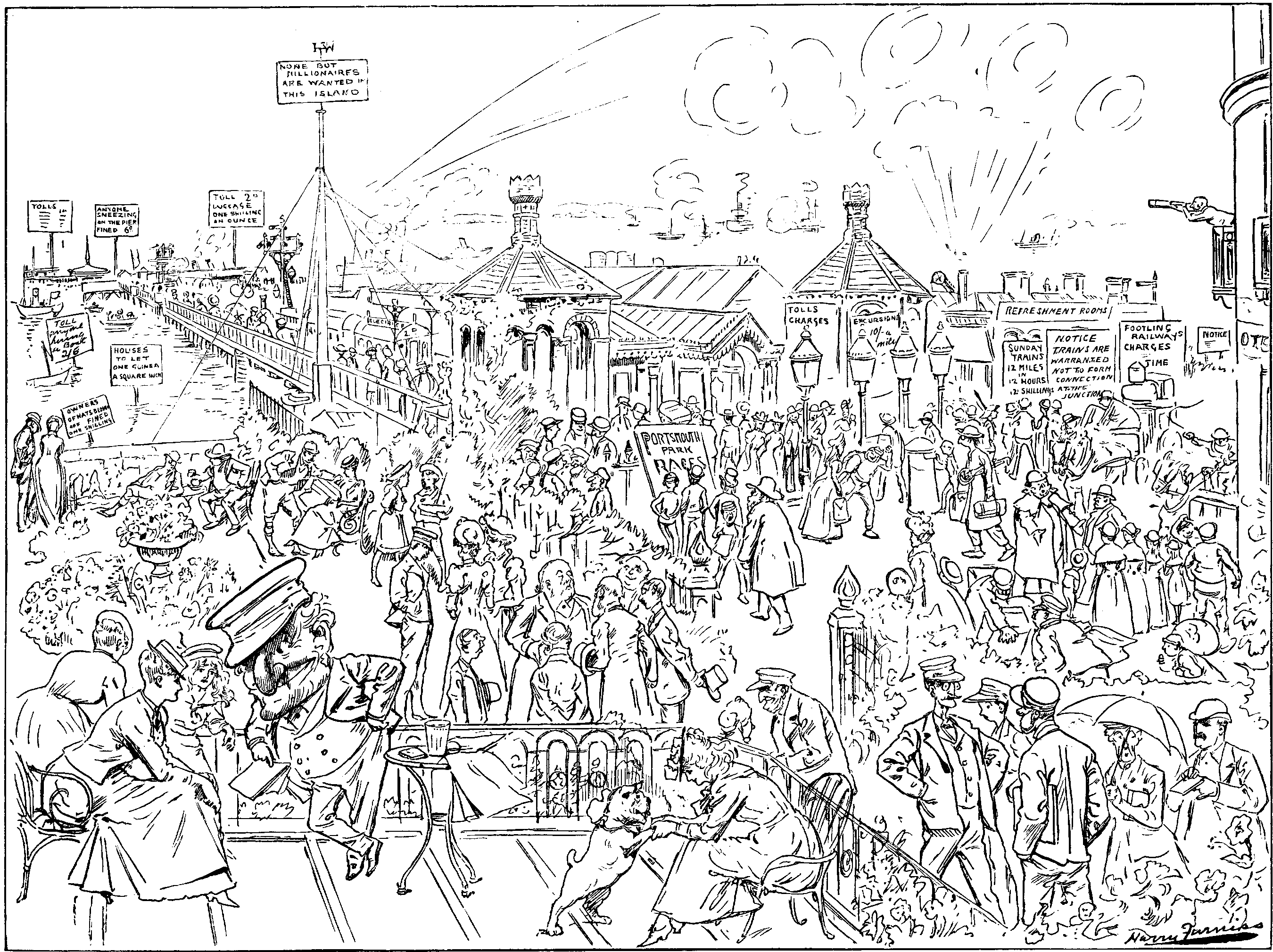 BROWN, with his ushal raddicle imperence, says it's becoz they knos as it's for the larst time. Yes, much BROWN knos about it, when he sed jest the werry same thing larst year! I'm told as Mr. BALFOUR and Mr. GOSHEN is to be seated nex to each other, so that they can take the Loving Cup together. So that will be all rite. We are going to have a splendid Persession—the werry longest and the werry hinterestingest of moddern times! So I adwise all my many kyind paytrons and Country Cuzzins to "cum erly." There's no telling what dredful changes may take place in these horful rewolushunary times, and ewen the "Sacred Sho" may be stript of sum of its many attrackshuns, or ewen erbolished altogether! But that is, of course, only a fearfool wision, begotten, as SHAKSPEARE says, of too much supper last nite, "a praying on my eat-oppressed Brane!" No, no! There are things as is posserbel, and there are things as ain't, and them as ain't done werry often happen.
