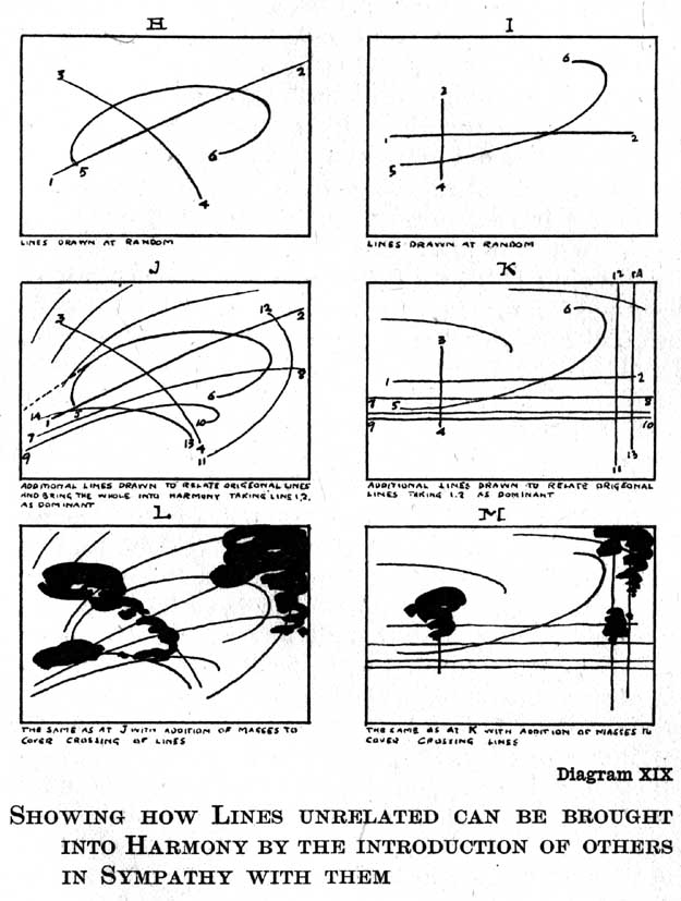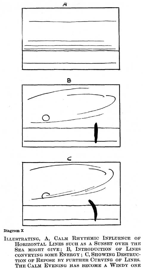 But who knows of words that can convey a just idea of such subtle matter? If one says "Art is the rhythmic expression of Life, or emotional consciousness, or feeling," all are inadequate. Perhaps the "rhythmic expression of life" would be the more perfect definition. But the word "life" is so much more associated with eating and drinking in the popular mind, than with the spirit or force or whatever you care to call it, that exists behind consciousness 27 and is the animating factor of our whole being, that it will hardly serve a useful purpose. So that, perhaps, for a rough, practical definition that will at least point away from the mechanical performances that so often pass for art, "the Rhythmic expression of Feeling" will do: for by Rhythm is meant that ordering of the materials of art (form and colour, in the case of painting) so as to bring them into relationship with our innate sense of harmony which gives them their expressive power. Without this relationship we have no direct means of making the sensuous material of art awaken an answering echo in others. The boy shouting at the top of his voice, making a horrible noise, was not an artist because his expression was inadequate—was not related to the underlying sense of harmony that would have given it expressive power.