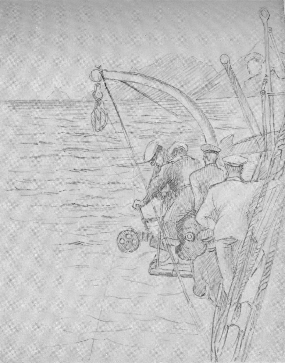 When morning broke we could see the land in the distance—greenness, trees, every now and then a cottage. We began to feel impatient. We unpacked the shore-going clothes with their creases three years old which had been sent out from home, tried them on—and they felt unpleasantly tight. We put on our boots, and they were positively agony. We shaved off our beards! There was a hiatus. There was nothing to do but sail up and down the coast and, if possible, avoid coastwise craft.