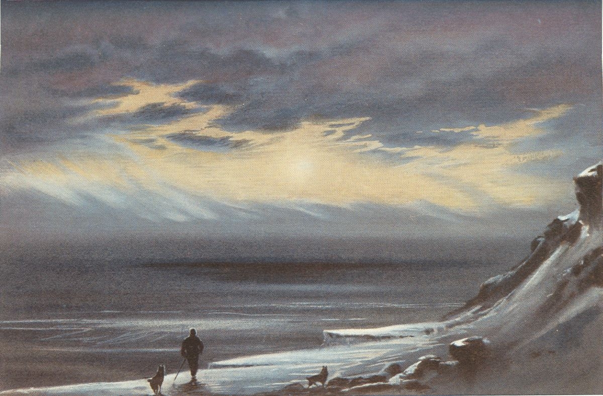 And the darkness, accompanied it may be almost continually by howling blizzards which prevent you seeing your hand before your face. Life in such surroundings is both mentally and physically cramped; open-air exercise is restricted and in blizzards quite impossible, and you realize how much you lose by your inability to see the world about you when you are out-of-doors. I am told that when confronted by a lunatic or one who under the influence of some great grief or shock contemplates suicide, you should take that man out-of-doors and walk him about: Nature will do the rest. To normal people like ourselves living under abnormal circumstances Nature could do much to lift our thoughts out of the rut of everyday affairs, but she loses much of her healing power when she cannot be seen, but only felt, and when that feeling is intensely uncomfortable.