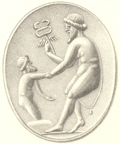 The gem on the title-page, now engraved for the first time, is a red cornelian in the British Museum, probably Græco-Roman, and treated in an archaistic style. It represents Hermes Psychagogos, with a Soul, and has some likeness to the Baptism of Our Lord, as usually shown in art. Perhaps it may be post-Christian. The gem was selected by Mr. A. S. Murray.