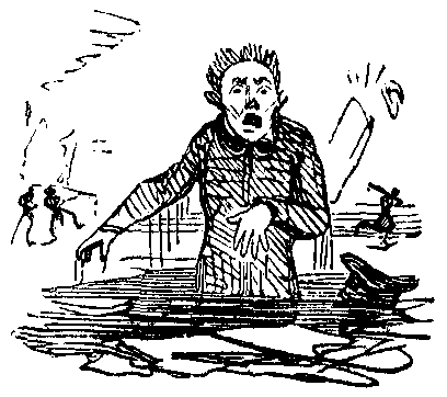 The morning after the carousal reported in our last chapter, the parties thereat assisting are dispersed in various parts of London. Did a modern Asmodeus take a spectator to any elevated point from which he could overlook the Great Metropolis of Mr. Grant and England just at this period, when Aurora has not long called the sun, who rises as surlily as if he had got out of bed the wrong way, he would see Mr. Rapp ruminating upon things in general whilst seated on some cabbages in Covent Garden Market; Mr. Jones taking refreshment with a lamplighter and two cabmen at a promenade coffee-stand near Charing Cross, to whom he is giving a lecture upon the action of veratria in paralysis, jumbled somehow or other with frequent asseverations that he shall at all times be happy to see the aforesaid lamplighter and two cabmen at the hospital or his own lodgings; Mr. Manhug, with a pocket-handkerchief tied round his head, not clearly understanding what has become of his latch-key, but rather imagining that he threw it into a lamp instead of the short pipe which still remains in the pocket of his pea-jacket, and, moreover, finding himself close to London Bridge, is taking a gratuitous doze in the cabin of the Boulogne steam-boat, which he ascertains does not start until eight o’clock; whilst Mr. Simpson, the new man, with the usual destiny of such green productions—thirsty, nauseated, and “coming round”—is safely taken care of in one of the small private unfurnished apartments which are let by the night on exceedingly moderate terms (an introduction by a policeman of known respectability being all the reference that is required) in the immediate neighbourhood of the Bow-street Police-office. Where Mr. Muff is—it is impossible to form the least idea; he may probably speak for himself.