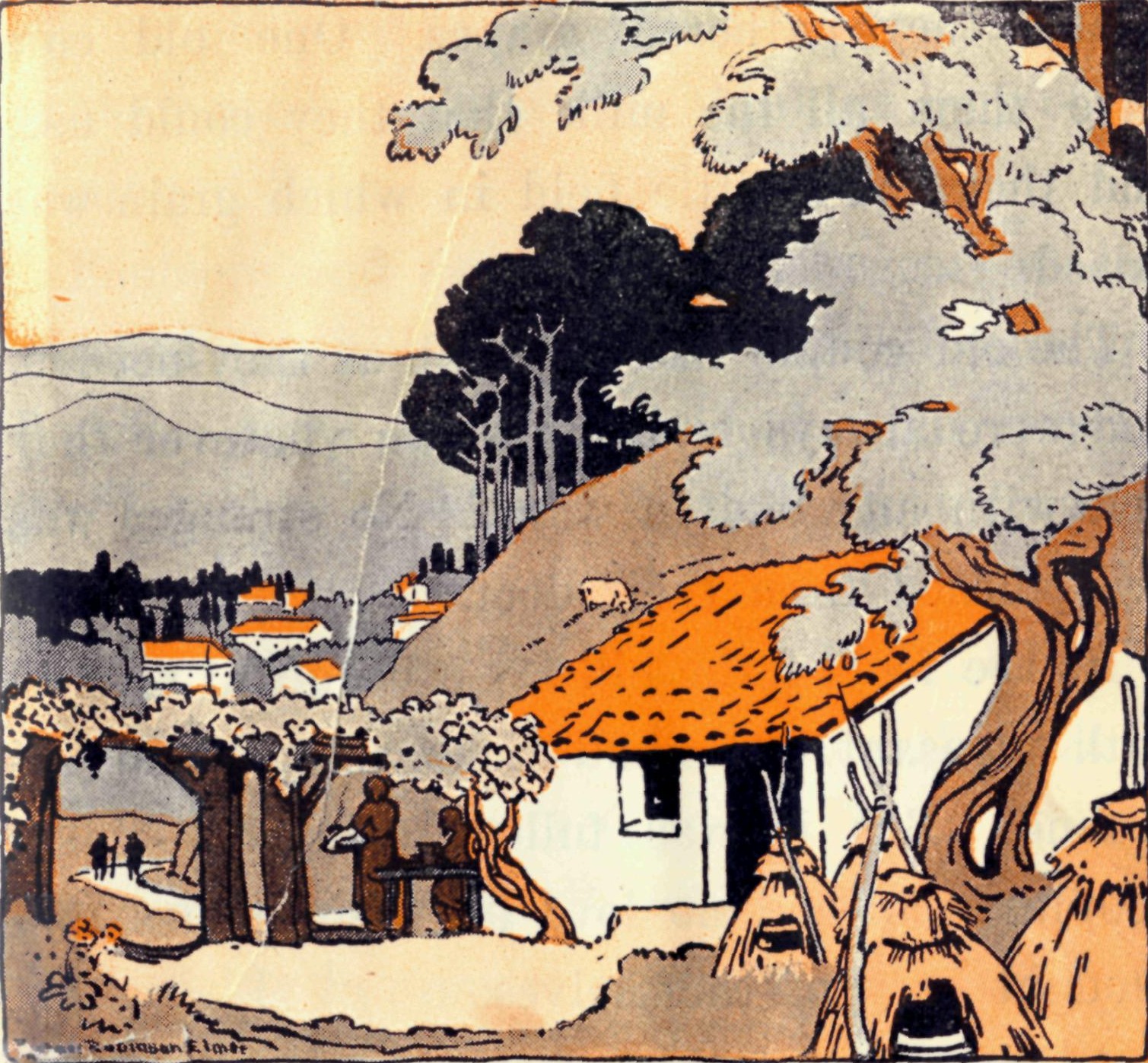 They were poor, but they were never unhappy. They had many hives of bees from which they got honey, and many vines from {10} which they gathered grapes. One old cow gave them all the milk that they could use, and they had a little field in which grain was raised.