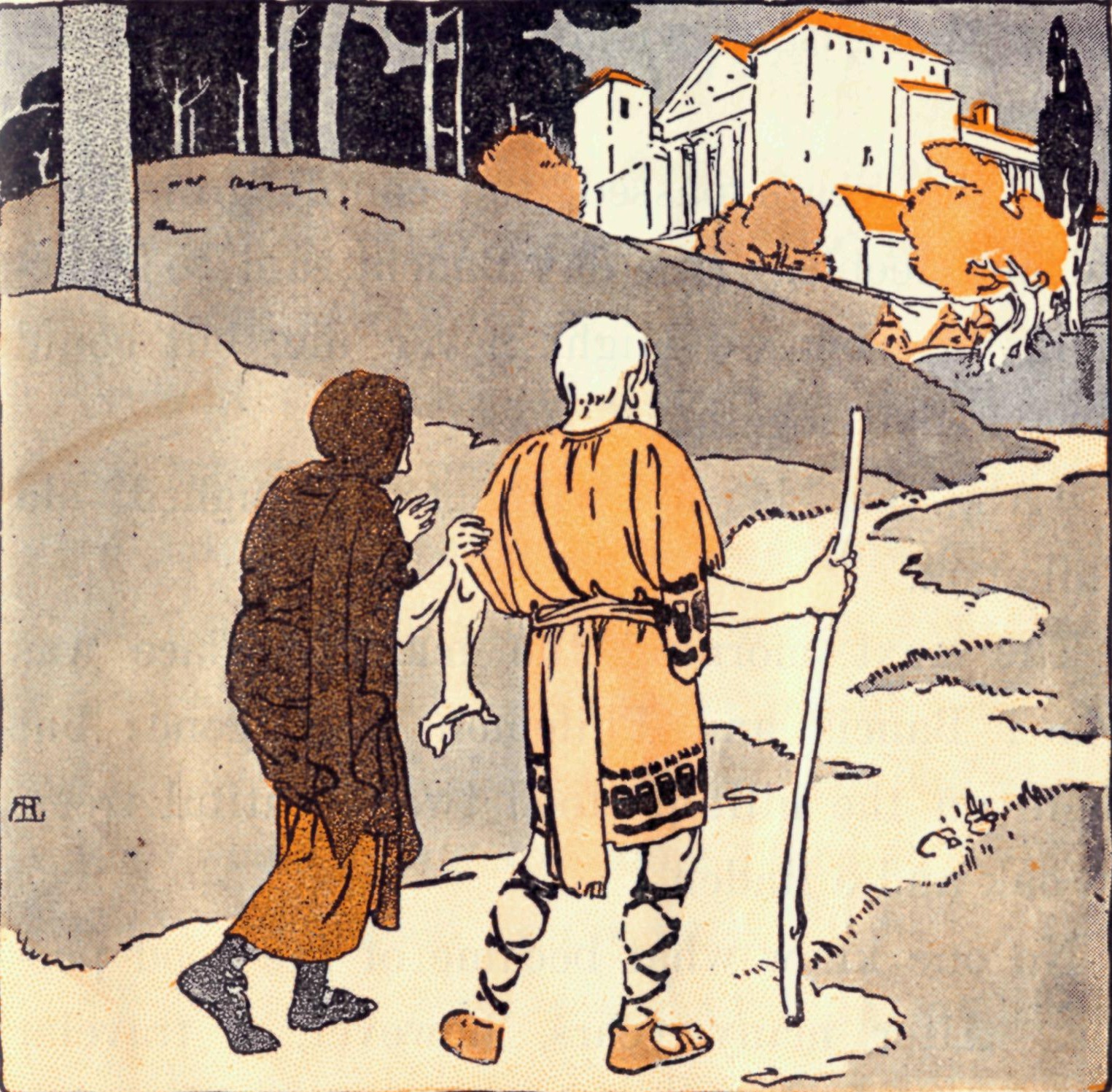 Long ago, on a high hill in Greece, Philemon and Baucis lived.