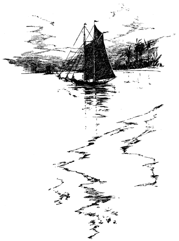Down the river! Sailing, sailing over the magical waters, past the fairy shores, already darkening into twilight shades of purple and gray. The white schooner glided along, passing, as she had come, like a dream. In the bow stood the Skipper, his eyes bent forward, his hand clasping fast the hand of the child.