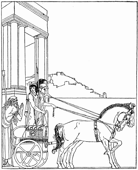 roy, the minstrel sang, was the greatest of the Cities of men; it had been built when the demi-gods walked the earth; its walls were so strong and so high that enemies could not break nor scale them; Troy had high towers and great gates; in its citadels there were strong men well armed, and in its treasuries there were stores of gold and silver. And the King of Troy was Priam. He was old now, but he had sons that were good Captains. The chief of them all was Hector.