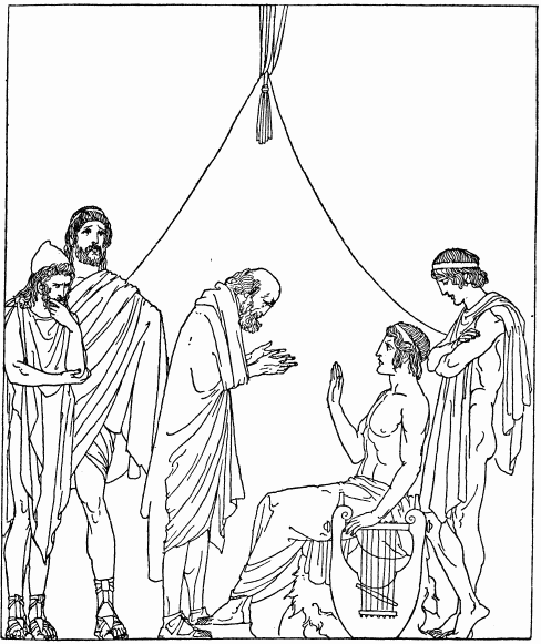 The minstrel sang how Paris went back to his father's City and was made a prince of Troy. Through the favor of Aphrodite he was the most beautiful of youths. Then Paris went out of the City again. Sent by his father he went to Tyre. And coming back to Troy from Tyre he went through Greece.