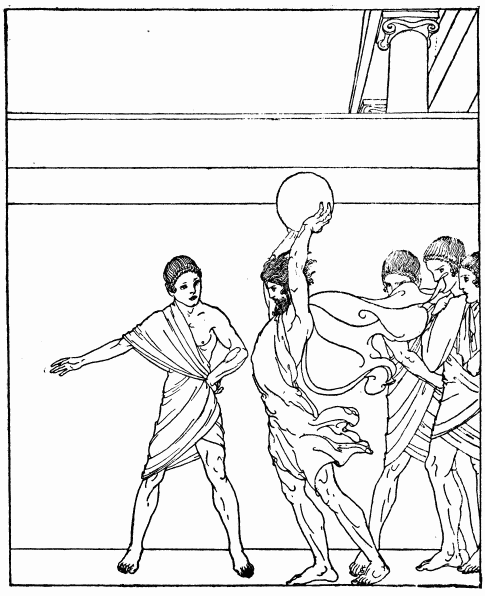 Penelope, his lady-mother, looked in surprise at the youth who spoke to her so wisely. Was this indeed Telemachus who before had hardly lifted his head? And as she looked at him again she saw that he carried his head—that head of his that was so like Odysseus'—high and proudly. She saw that her son was now indeed a man. Penelope spoke no word to him, for a new thought had come into her mind. She turned round on the stairs and went back with her hand-maids to the chamber where her loom and her distaff were. And as she went up the stairway and away from them her wooers muttered one to the other that she would soon have to choose one of them for her husband.