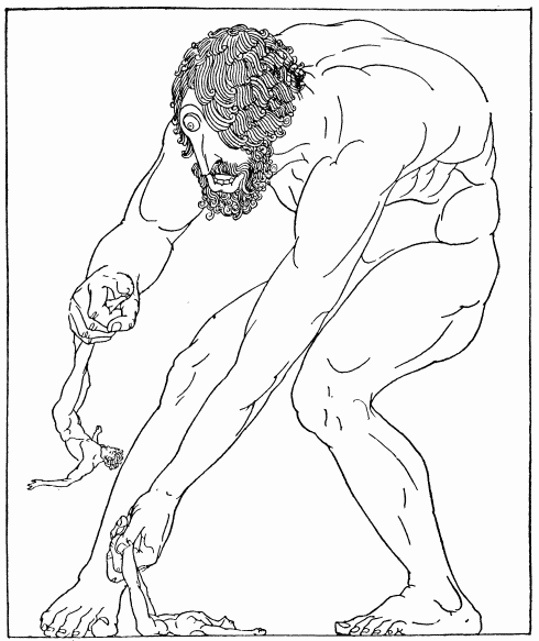 It was when Telemachus was a child of a month old that a messenger came from Agamemnon, the Great King, bidding Odysseus betake himself to the war against Troy that the Kings and Princes of Greece were about to wage. The wise Odysseus, foreseeing the disasters that would befall all that entered that war, was loth to go. And so when Agamemnon's messenger came to the island of Ithaka where he was King, Odysseus pretended to be mad. And that the messenger, Palamedes, might believe he was mad indeed, he did a thing that no man ever saw being done before—he took an ass and an ox and yoked them together to the same plough and began to plough a field. And when he had ploughed a furrow he sowed it, not with seeds that would grow, but with salt. When Palamedes saw him doing this he was nearly persuaded that Odysseus was mad. But to test him he took the child Telemachus and laid him down in the field in the way of the plough. Odysseus, when he came near to where the child lay, turned the plough aside and thereby showed that he was not a mad man. Then had he to take King Agamemnon's summons. And Agamemnon's word was that Odysseus should go to Aulis where the ships of the Kings and Princes of Greece were being gathered. But first he was to go into another country to seek the hero Achilles and persuade him also to enter the war against Troy.