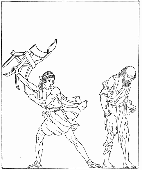 Old Laertes wept before Odysseus. 'Ah,' said he, 'if thou hadst been able to find him here, the gifts you gave him would not have been bestowed in vain. True hospitality thou wouldst have received from Odysseus, my son. But he has perished—far from his country's soil he has perished, the hapless man, and his mother wept not over him, nor his wife, nor me, his father.'