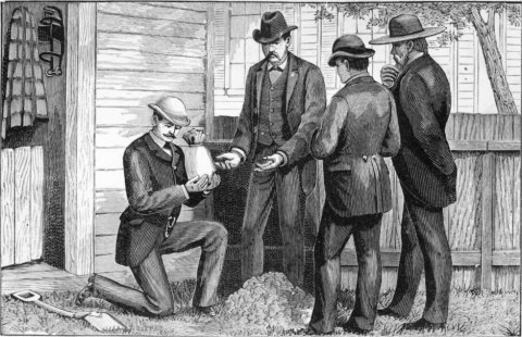 At last, however, Mr. Pearson succeeded in unscrewing the bolts from the lock upon the inside of the doors of the vault, and in a few minutes thereafter, he leaped out, and dashing through a window, gave the alarm upon the street. The news spread far and wide, and within an hour after the robbery had taken place, the town was alive with an excited populace, and numerous parties were scouring the country in all directions in eager search of the fugitives. All to no avail, however, the desperate burglars were not discovered, and the crest-fallen bank officers contemplated their[Pg 21] ruin with sorrowful faces, and with throbbing hearts.