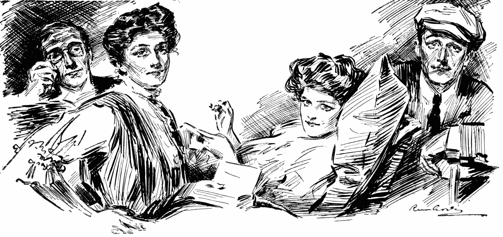 "Suppose she should leave her slippers kicking around over those white rugs, drop her kimono in the middle of that pond-lily bed, and—er—attach a mound of chewing-gum to the corner of the mirror," he propounded.