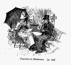 What struck me principally in Montreux was its extreme suitability to the purposes of the international novelist. It was full of sites for mild incidents, for tacit tragedies, for subdued flirtations, and arrested improprieties. I can especially recommend the Kursaal at Montreux to my brother and sister fictionists looking about for a pretty entourage. Its terrace is beaten by the billows of the restless lake, and in soft weather people sit at little tables there; otherwise they take their ices inside the café, and all the same look out on the Dent-du-Midi, and feel so bored with everybody that they are just in the humor to be interested in anybody. There is a very pretty theatre in the Kursaal, where they seldom give entertainments, but where, if you ever go, you see numbers of pretty girls, and in a box a pale, delicate-looking middle-aged Englishman in a brown velvet coat, with his two daughters. The concert will be very good, and a young man of cultivated sympathies and disdainful tastes could have a very pleasant time there. For the rest, Montreux offers to the novelist's hand perhaps the crude American of the station who says it is the cheapest place he has struck, and he is going to stick it out there awhile; perhaps the group of chattering American school-girls; perhaps the little Jewish water-color painter who tells of his narrow escape from the mad dog, which having broken his chain at Bouveret, had bitten six persons on the way to Clarens, and been killed by the gendarmes near Vevay; perhaps two Englishwomen who talk for half an hour about their rooms at the hotel, and are presently joined by their husbands, who pursue the subject. These are the true features of modern travel, and for a bit of pensive philosophy, or to have a high-bred, refined widow with a fading sorrow encountered by a sensitive nature of the other sex, there is no better place than the sad little English church-yard at Montreux. It is full of the graves of people who have died in the search for health far from home, and it has a pathos therefore which cannot be expressed. The stones grow stained and old under the laurels and hollies, and the rain-beaten ivy creeps and drips all over the grassy mounds. Yes, that is a beautiful, lonely, heart-breaking place. Now and again I saw black-craped figures silently standing there, and paid their grief the tribute of a stranger's pang as I passed, happy with my children by my side.