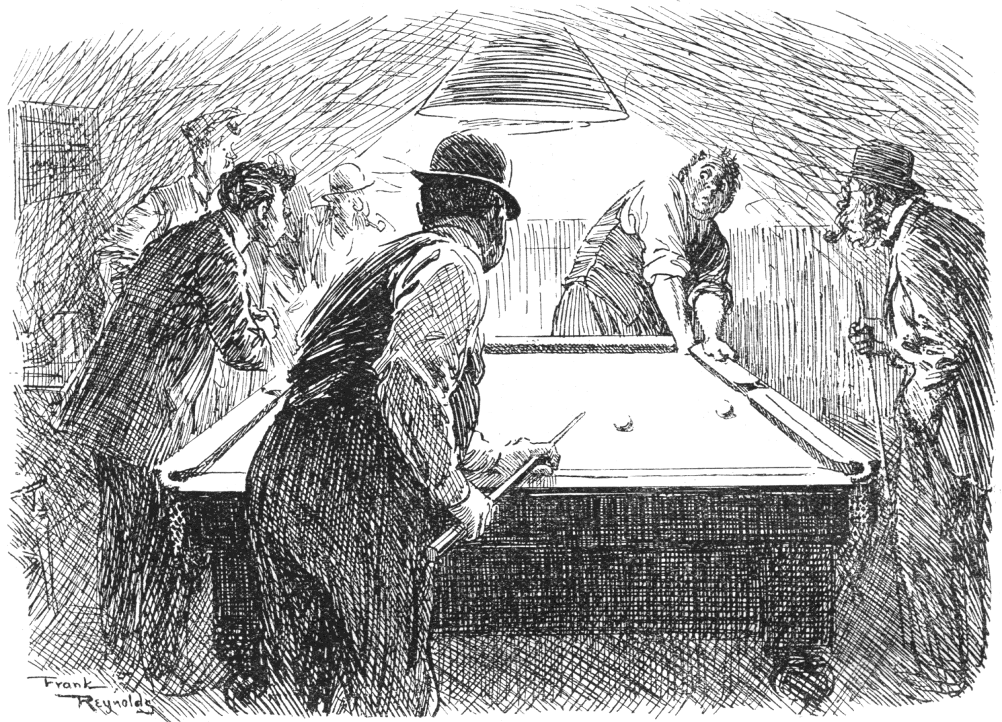Willium (having at critical stage in four-handed game undertaken to spot the red). "'Tis all over, Gearge—my hand be stuck in the pockut."