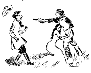 Mais Paul évita l'élan de son ennemi, fit un bond de côté et lui planta la pointe de fer dans le fessier. Ce dernier poussa un cri de douleur et se sauva à toutes jambes. Aussitôt, revirement complet, et les spectateurs de crier: