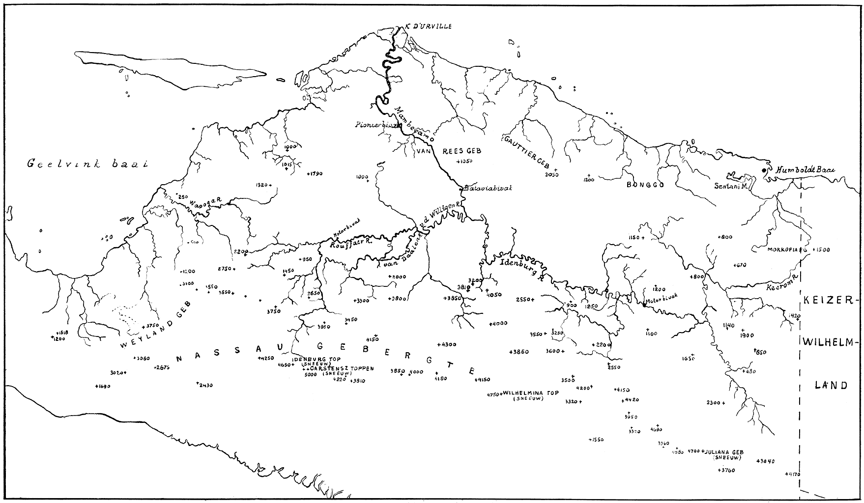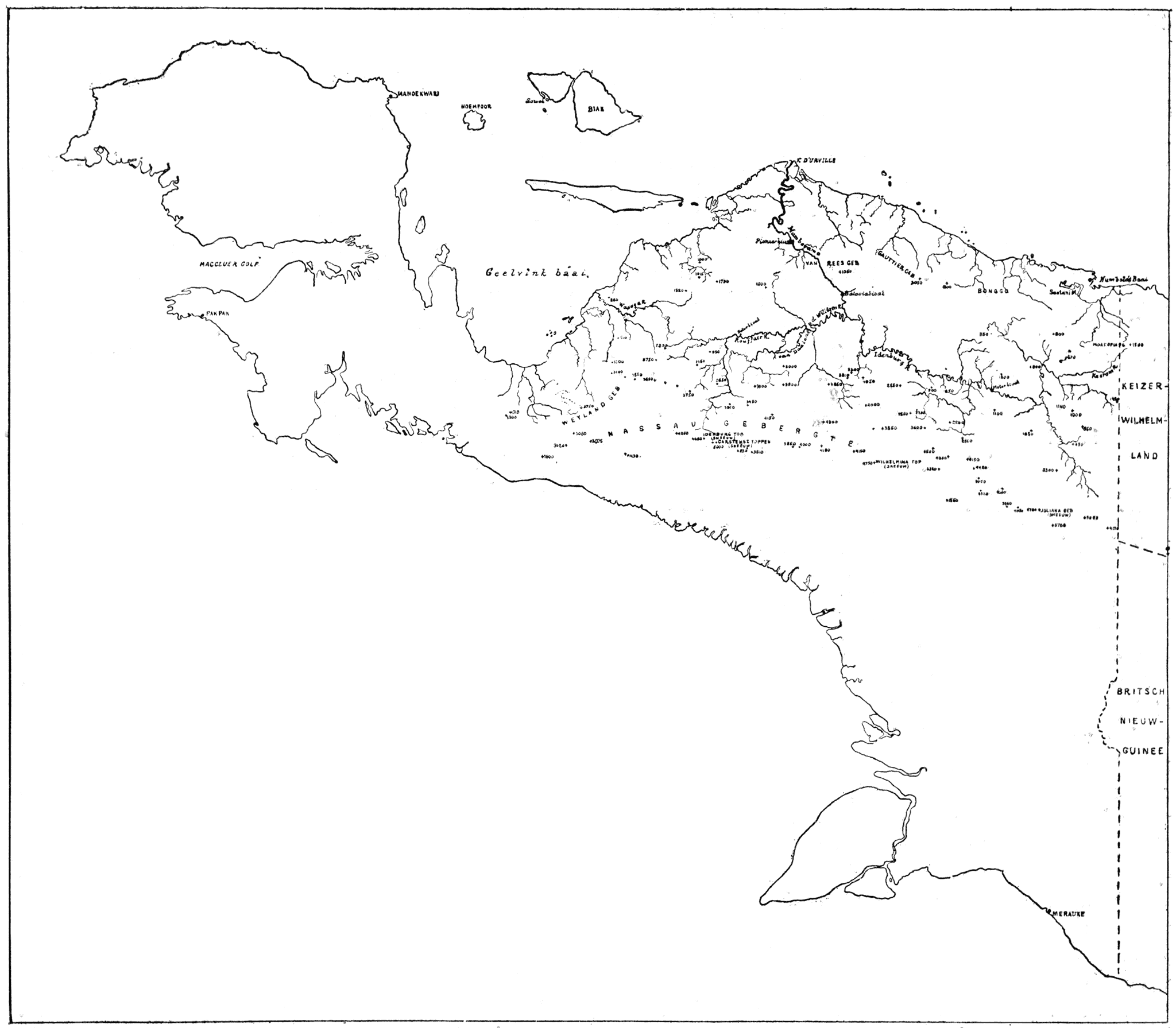Tot 1903 was hier betrekkelijk nog zeer weinig van land en volk bekend. In den loop der tijden slechts hadden de zeevaarders de kusten vrij behoorlijk in kaart gebracht; aan de zendelingen, die sinds 1855 op Nieuw-Guinee hun vestigingen hadden, was het te danken, dat eenige van de onmiddellijk aan zee grenzende streken met hun bevolking meer nauwkeurig bekend werden.