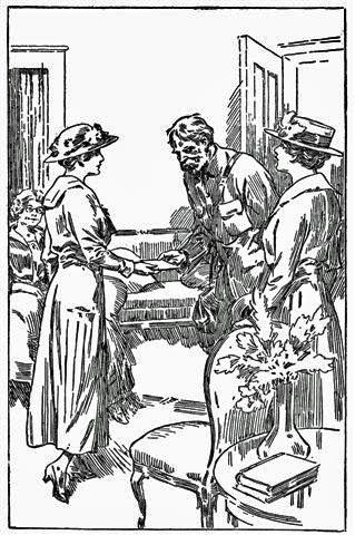 Before he was fairly through the gate a lithe figure had darted down the steps toward him. Halfway up the walk they met. "Telegram for you, Miss Harlowe," announced the boy cheerily. "Sign here, please." Handing her a stub of a pencil, he held the book. With a shaking hand she managed to trace her name. As he turned and went down the walk whistling shrilly, Grace stared at the yellow envelope, hardly daring to open it.