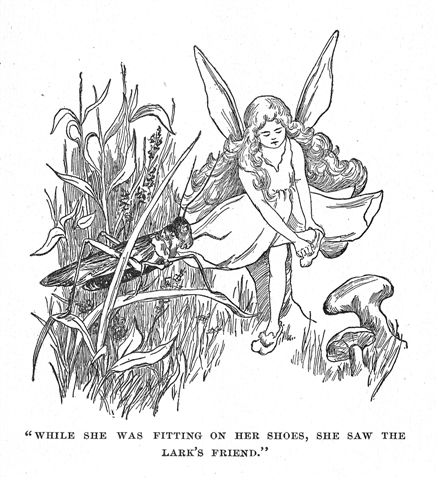 "While she was fitting on her shoes, she saw the Lark's friend"