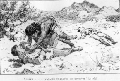 And now in the clearer light grey ants aligned with the red. The red ants, had he known it, were the Black Watch, going into action in their red coats and kilts; the grey were the men of the South Staffordshire Regiment; the large black ants in rear were the guns. He did not know these details, but he recognised English troops, not seen now for a long time by him, and his heart beat high with excitement and hope. Now was his chance of escape. Unless he were killed during the assault, or taken prisoner and shot before he had time to explain himself, he would surely be able to get away in the confusion of fight. Even if the English were repulsed, he could feign pursuit and so come up with them.