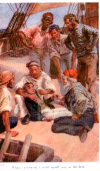 The mate put questions to me which I was unable to answer; indeed I was almost fainting before I was lifted up the side of the “Falcon.” One of the first persons I set eyes on was Mark Riddle. He was much grown and bronzed. Had I not been aware that he was on board, I should not at first have known him; nor did he guess who I was till Tom told him, when he sprang to my side, and warmly grasped my hand. He forbore asking questions, as he saw that I was not in a state to reply. The first thing Tom did was to bring me a mug of water, which I eagerly drank. After that the captain ordered that I should be carried to a spare berth in the cabin.