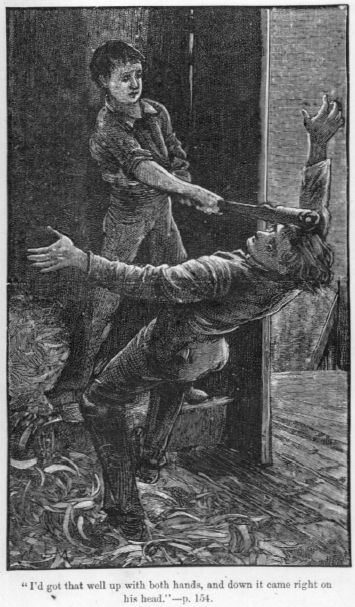 “Hit you!—you stupid, thick-headed, drowsy oaf! I’ll knock some sense into you. Nice pair, upon my word! And you—you scoundrel,” he cried, turning on me, “where have you been?”