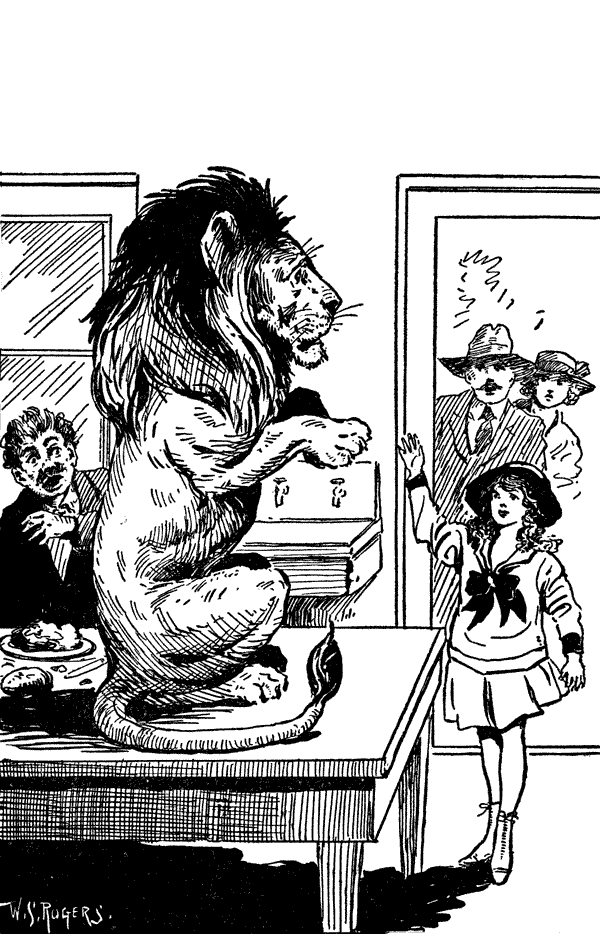 "There! What did I tell you?" cried the little girl, clapping her hands. "I knew he was the tame, circus lion! Doesn't he sit up nice?"