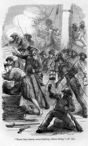 Scarcely had the smoke cleared off from the deck when the roar of the enemy’s guns was heard, and several shot came crashing against the side. One, coming through a port, passed close above Paul’s head, and though it sent the splinters flying about in every direction, no one was hurt.