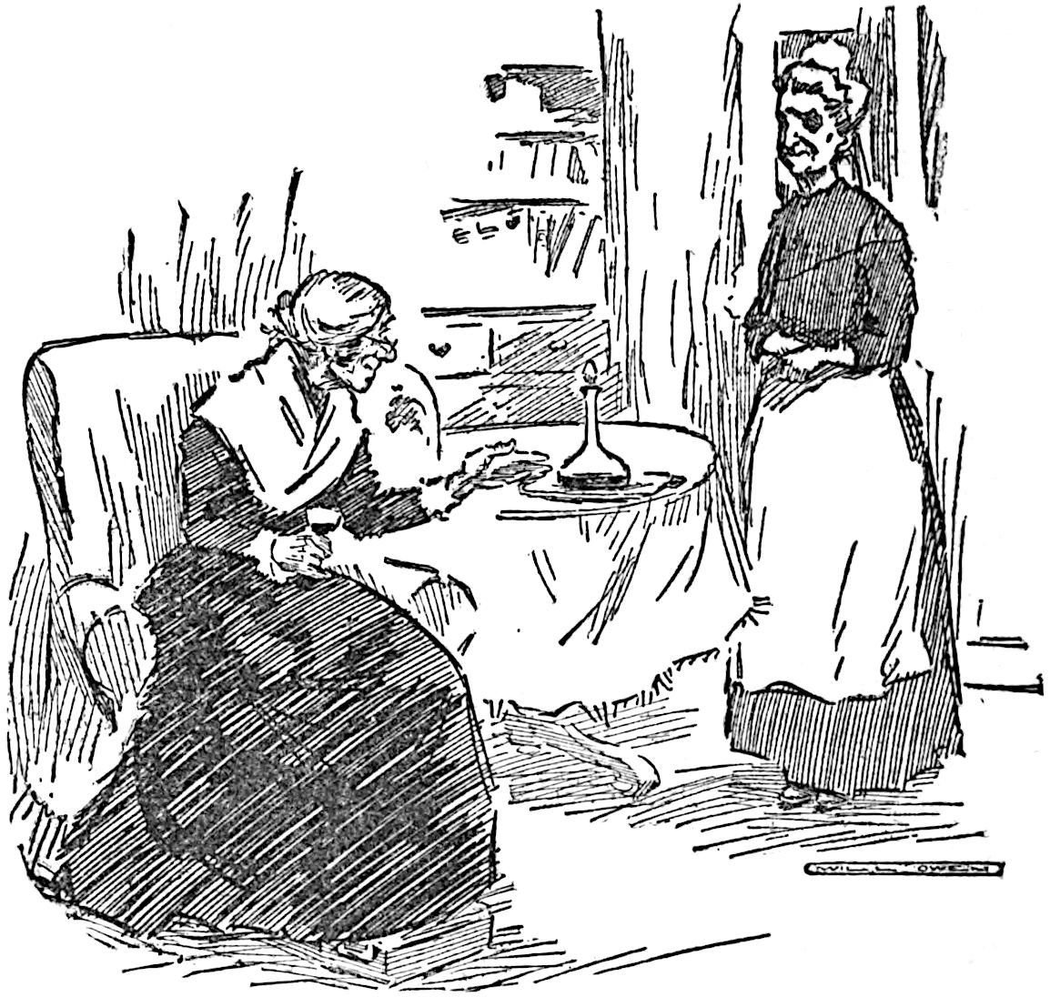 He closed the door behind them, and, while Mr. Vyner stood gazing moodily at the mound on the table which appeared to have been hastily covered up with a rather soiled towel, placed a couple of easy chairs by the fire. Mr. Vyner, with his eyes still on the table, took his seat slowly, and then transferring his regards to Captain Trimblett, asked him in a stern vein what he was smiling at Joan for.